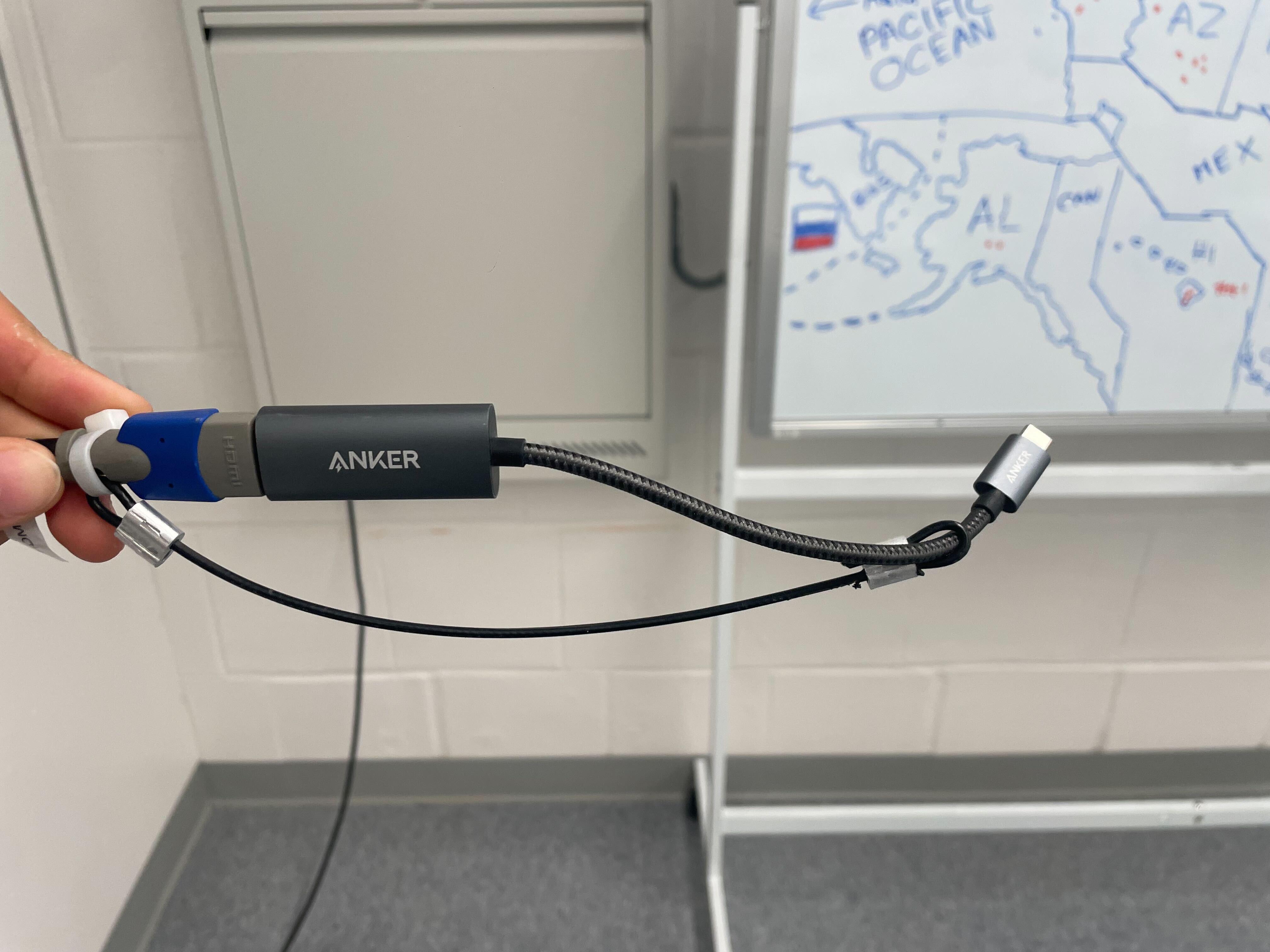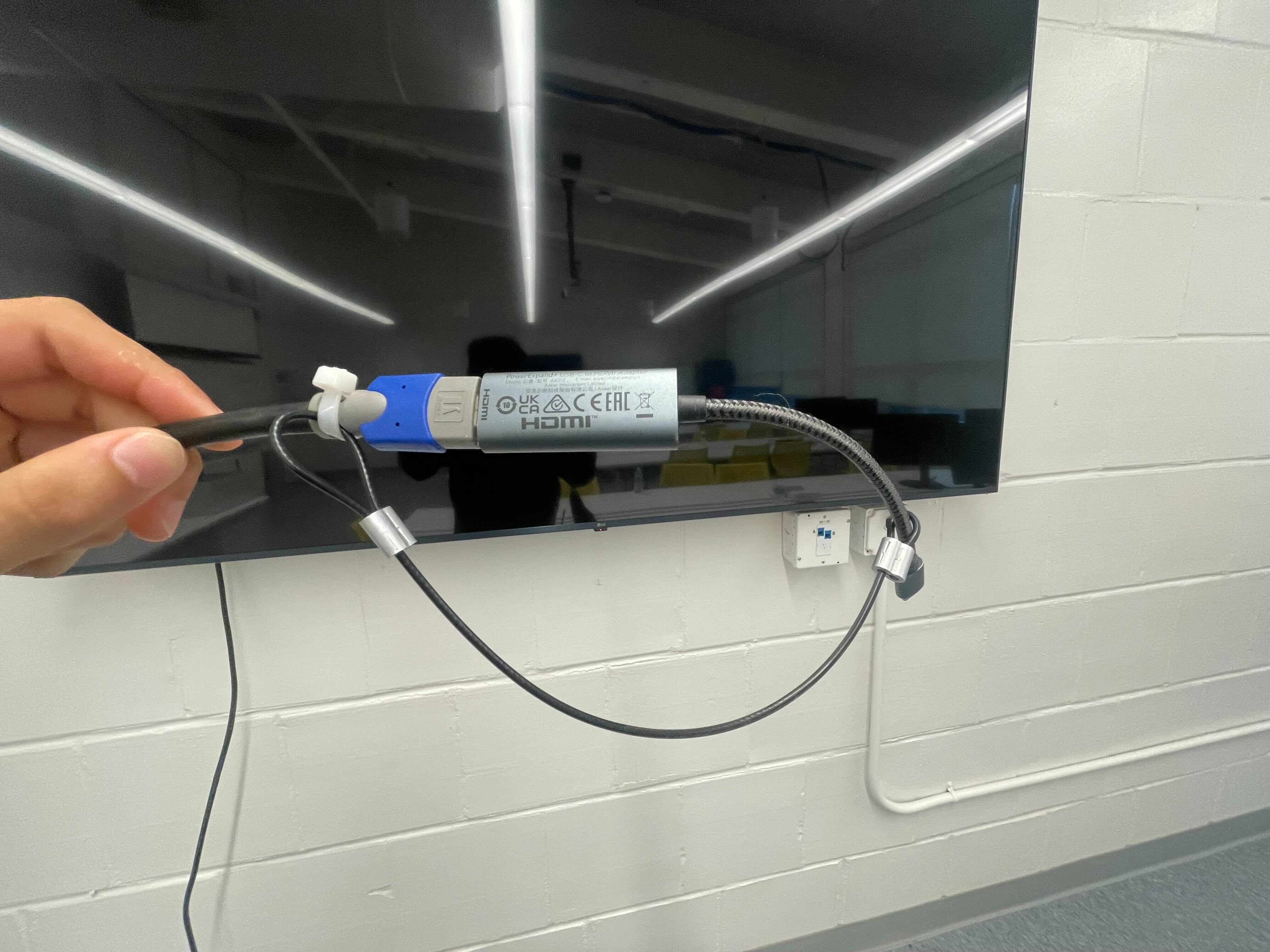 A usb-c to HDMI adapter is provided in the room. Older computers without USB-C and without HDMI built-in can check out an adapter from Academic Technology in LIB 80. |